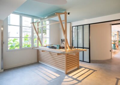 Pour répondre à vos objectifs d’améliorer le confort des équipes, des clients et de fluidifier le service, notre équipe d’architectes d’intérieur imagine une ambiance globale, du sol jusqu’au plafond en passant par le choix matériaux et couleurs et vous propose des réalisations 2D et 3D pour que votre projet prenne vie. À travers ce projet, notre rôle est de créer une ambiance mémorable en exprimant votre identité de marque jusque dans les moindres détails.