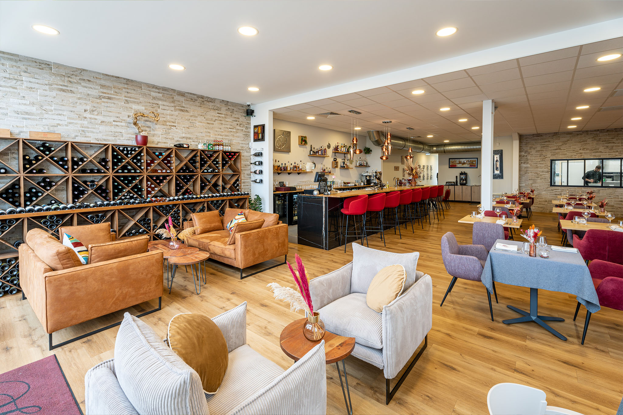 Au cœur de votre établissement, la salle met en scène votre cuisine et votre promesse. Nous pensons son parcours et ses ambiances pour orchestrer le rythme du service, faciliter la rotation sans précipitation et créer des souvenirs mémorables pour votre clientèle. Grâce à notre accompagnement, chaque m² sert l’hospitalité et la performance. Nous pensons votre projet dans sa globalité, de la cuisine à la salle en respectant la marche en avant.